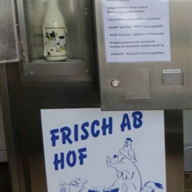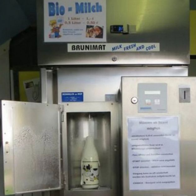 An unserer "Frischmilchtankstelle" können Sie jederzeit frische, unbehandelte Milch von unseren Kühen bekommen.
